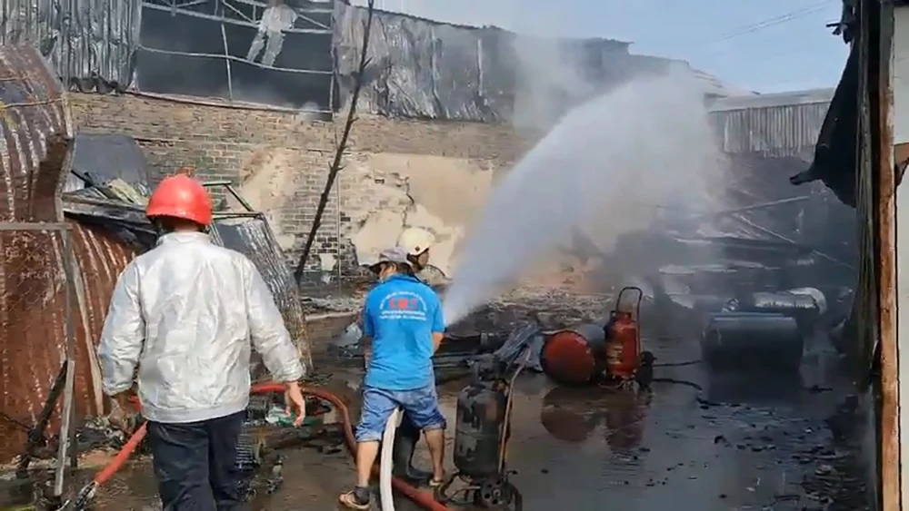 Sau ít phút, đám cháy lan sang, uy hiếp dãy trọ gần đó. Trong lúc này, cảnh sát PCCC huyện Bình Chánh có mặt cùng với nhiều phương tiện và hàng chục cán bộ chiến sĩ.