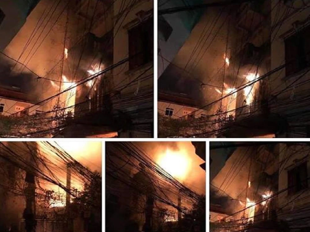 "Khi phát hiện cháy, tôi cùng mọi người trong nhà bế hai đứa trẻ chạy xuống dưới nhà thoát thân vì lo sợ lửa từ ngôi nhà bên cạnh bén sang" – một người dân thông tin.