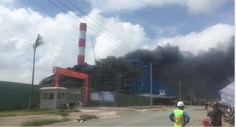 Công trường thi công Nhà máy nhiệt điện Duyên Hải 3 mở rộng (thuộc Trung tâm Điện lực Duyên Hải) xảy ra sự cố cháy.