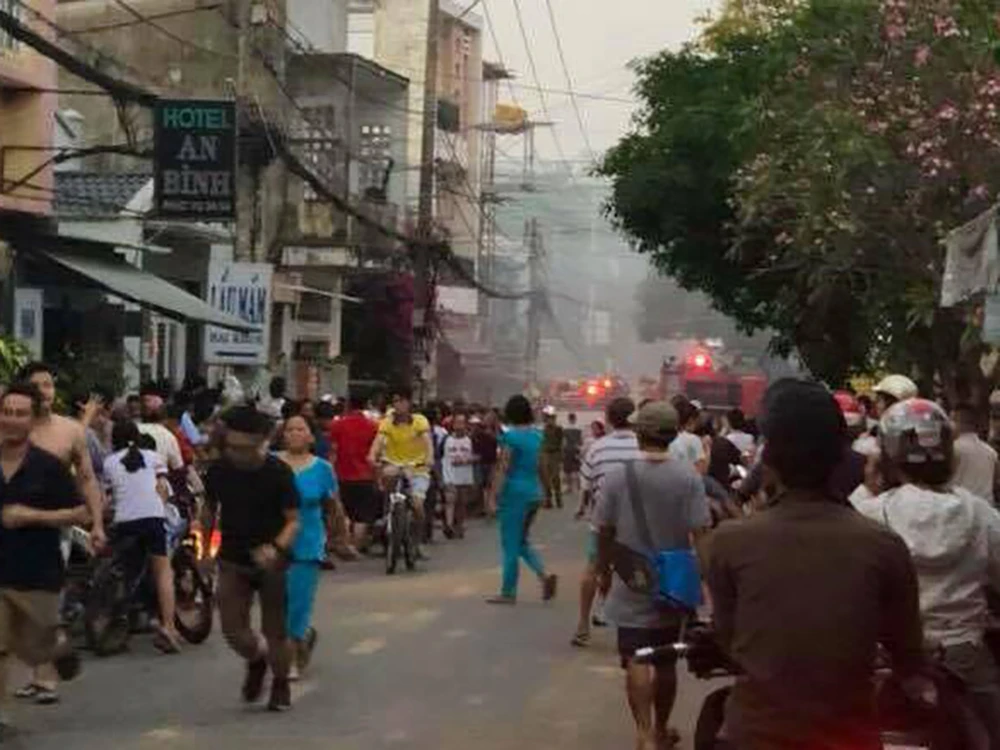 Vụ cháy khiến người dân khu vực hoảng hốt vì sợ cháy lan. Ảnh: H.TÂM