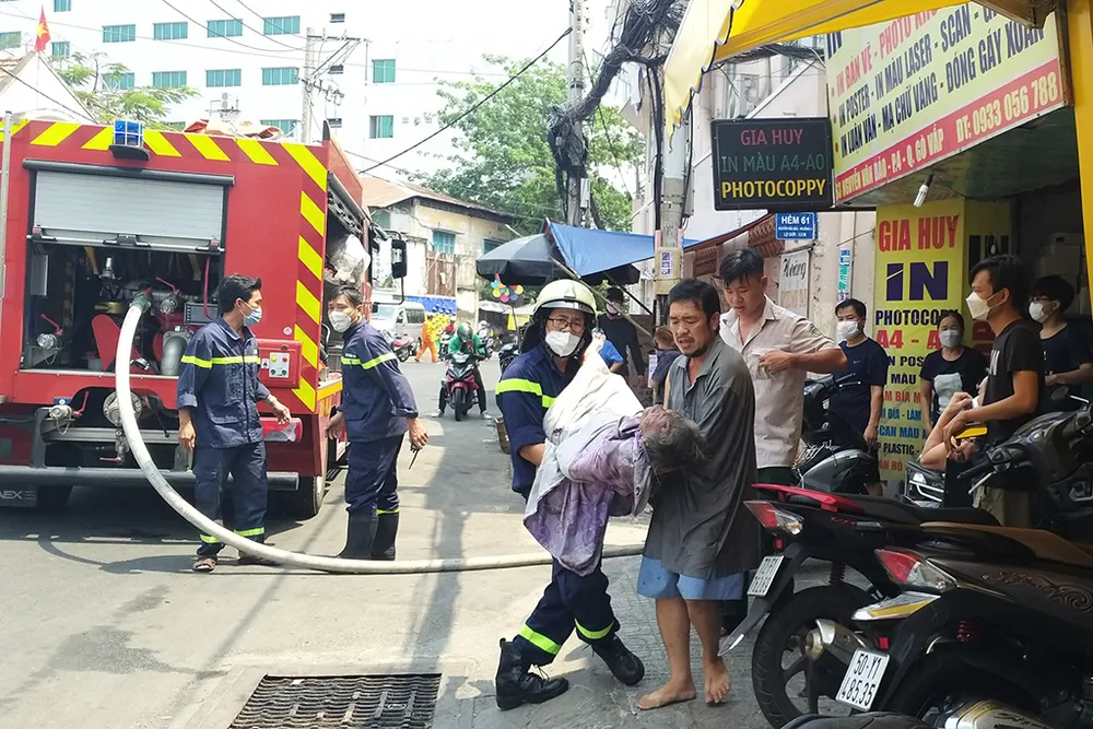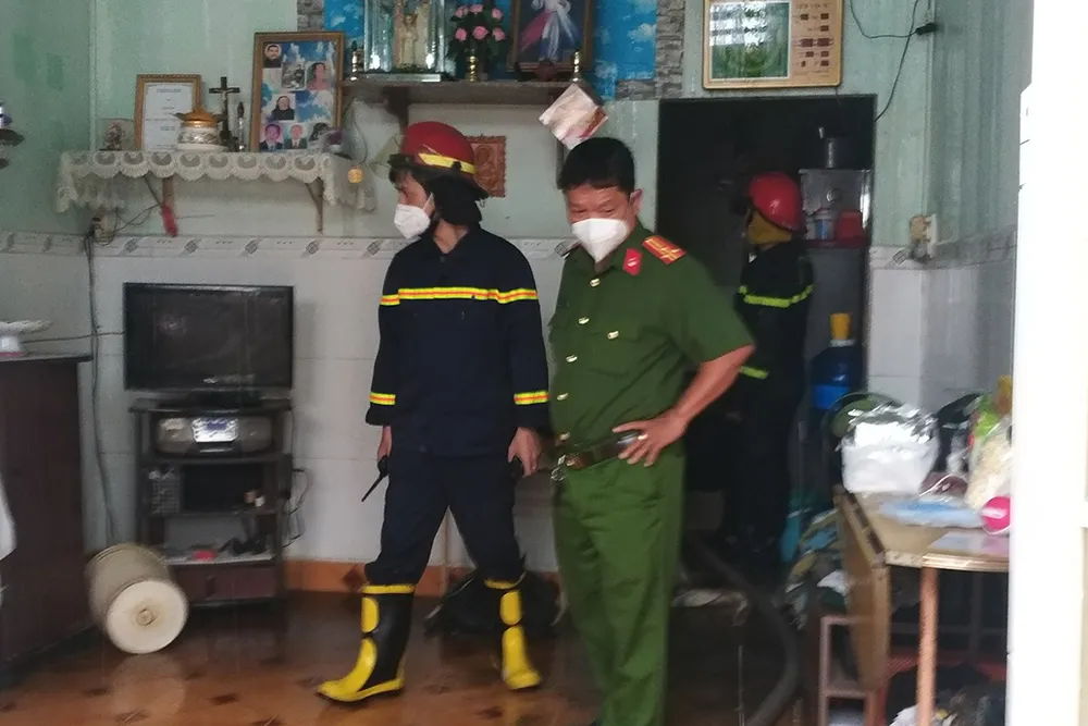 Cảnh sát tiến vào bên trong, cứu cụ bà Trương Thị Lũy (SN 1927) ra ngoài. Nạn nhân được đưa vào Bệnh viện quân y 175 cấp cứu.