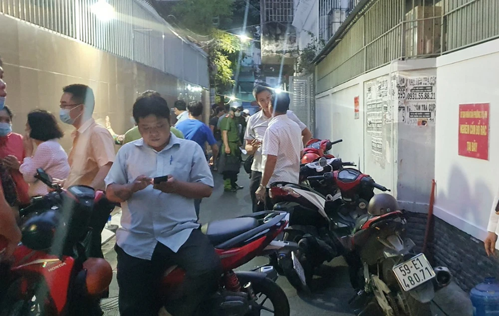 Đến khoảng 18 giờ ngày 27-10, Công an quận Phú Nhuận vẫn đang phong toả hẻm số 50 đường Nguyễn Đình Chiểu (phường 3, quận Phú Nhuận) để khám nghiệm hiện trường, điều tra nguyên nhân vụ cháy xảy ra tại một căn nhà khiến một người tử vong.