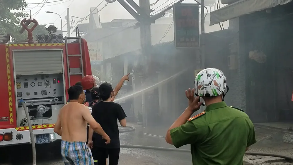 Người dân gọi điện báo chủ nhà rồi phá cửa xông vào trong cứu tài sản, vật dụng và đưa được hai xe máy ra ngoài. Sợ cháy lan, người dân xung quanh cũng tá hỏa di dời đồ đạc.