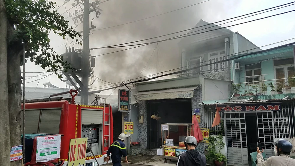 Do căn nhà vắng người, cửa khóa trái. Lửa gặp các vật liệu dễ cháy nên bùng lên bốc khói mù mịt.