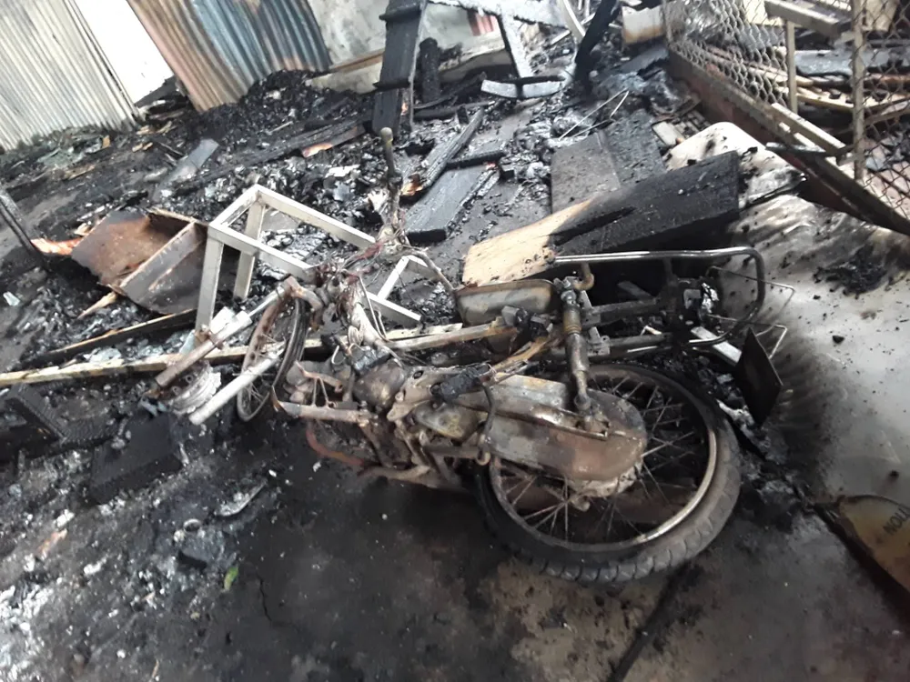 Toàn bộ tài sản trong xưởng bị lửa thiêu rụi hoàn toàn.