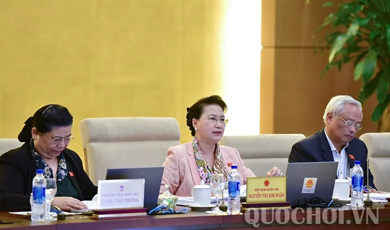 Chủ tịch QH Nguyễn Thị Kim Ngân (ở giữa) và hai Phó Chủ tịch Tòng Thị Phóng (bên trái) và Uông Chu Lưu.