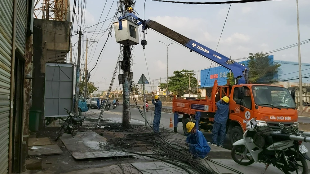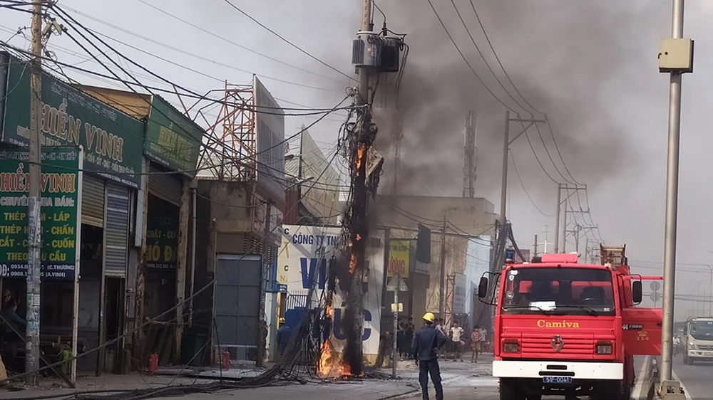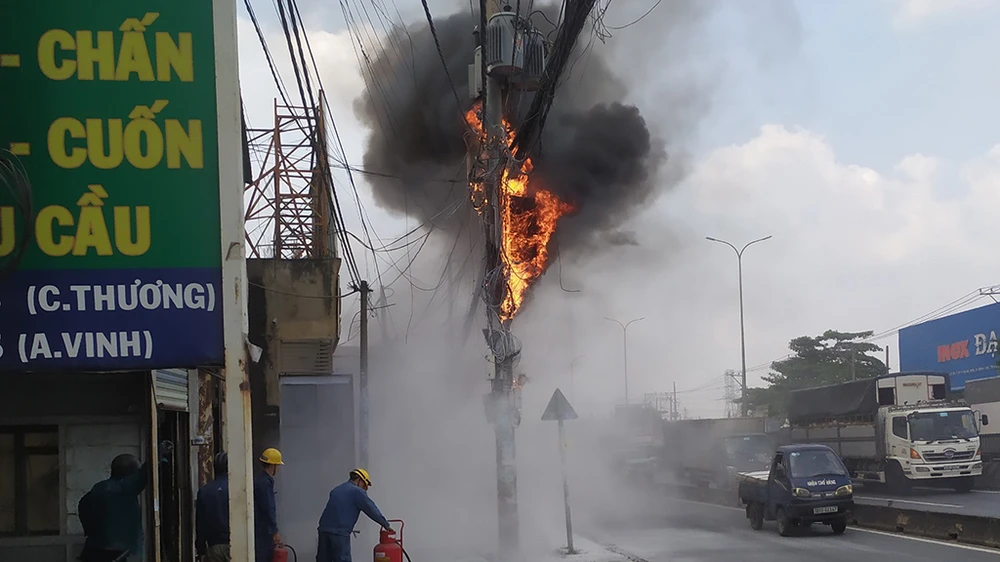 Theo thông tin ban đầu, khoảng 14 giờ 15 ngày 7-1, trụ điện trước nhà 350 quốc lộ 1A (quận Bình Tân, TP.HCM) xảy ra chập điện gây tiếng nổ nhỏ và cháy.
