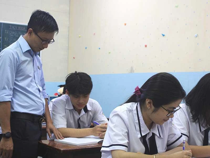 “Trường này ở khu vực ngoại thành, đầu vào khá thấp nên quan điểm của tôi là làm sao các em đều đỗ tốt nghiệp. Vì vậy, học sinh có học lực yếu mỗi tuần đều có những tiết phụ đạo riêng” - ông Bình nói.