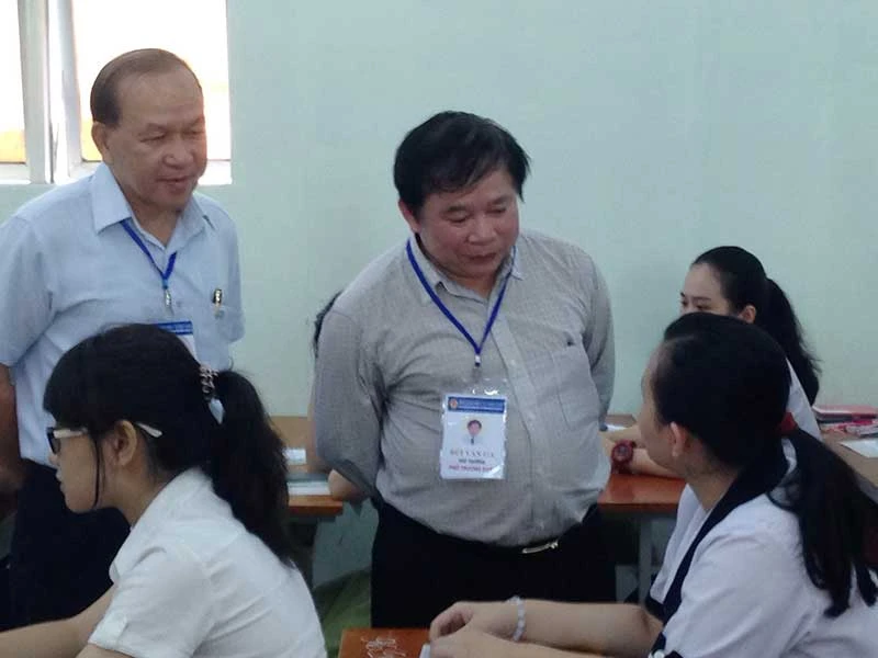 Thứ trưởng Bộ GD&ĐT Bùi Văn Ga kiểm tra công tác giám thị trước khi giao đề cho thí sinh. Ảnh: P.ĐIỀN