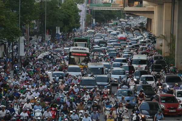 Đám cháy vào giờ tan tầm gây kẹt xe qua khu vực. Ảnh: vnExpress