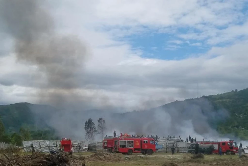 Vụ cháy xảy ra tại dự án điện mặt trời ở TP Cam Ranh. Ảnh: THÀNH LONG