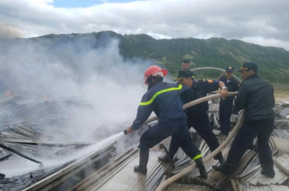 Trao đổi với Pháp Luật TP.HCM lúc 14 giờ 40 ngày 10-1, ông Nguyễn Ngọc Sơn, Phó Chủ tịch UBND TP Cam Ranh (Khánh Hòa), cho biết các lực lượng chữa cháy vẫn đang nỗ lực dập tắt đám cháy xảy ra tại dự án điện mặt trời của Công ty CP Điện mặt trời Tuấn Ân ở xã Cam Thịnh Tây, TP Cam Ranh.