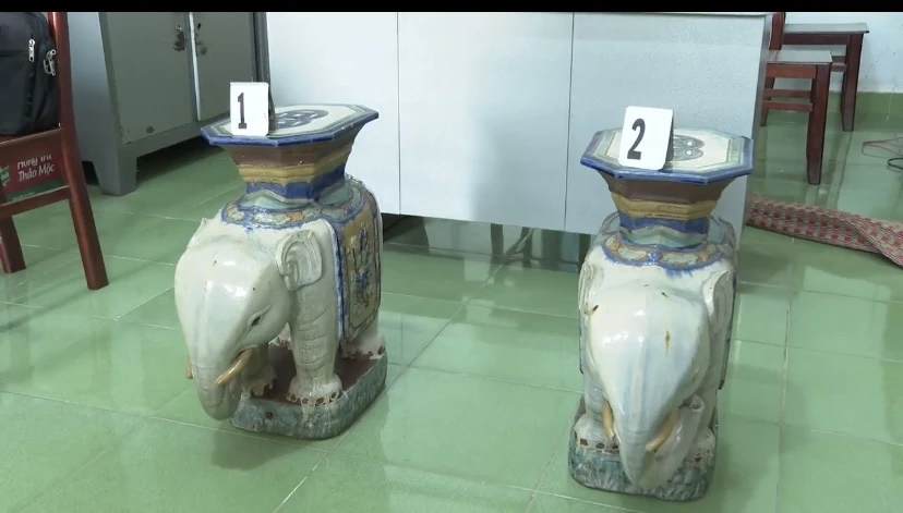 2 cái ghế đôn làm bằng sứ, có hình con voi trị giá 60 triệu đồng. Ảnh: CACC