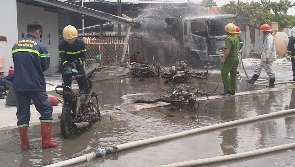 Phải 30 phút sau lửa mới được khống chế, dập tắt nhưng xe bồn chuyên chở nhiên liệu bị cháy, hư hỏng nặng. Ngoài ra, có hàng loạt xe máy bị cháy rụi.