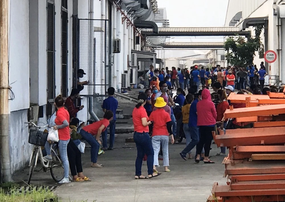 Hàng trăm công nhân công ty tháo chạy ra ngoài. Ảnh: HẢI HIẾU