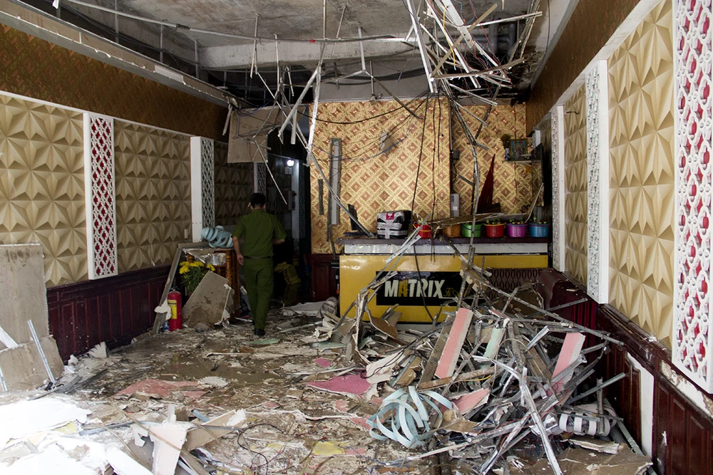 Vụ cháy thiêu rụi bên trong quán karaoke. Ảnh: NGUYỄN TRI.