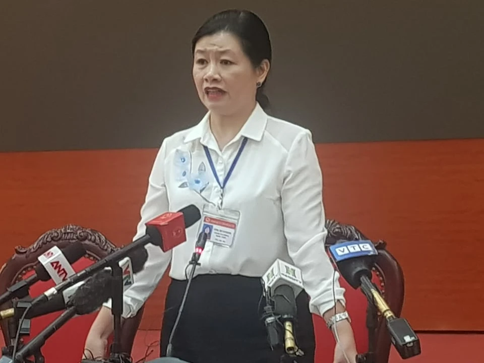 Bà Vương Thị Vân Khánh, Chánh văn phòng UBND quận Thanh Xuân tại buổi giao ban báo chí chiều 17-9. Ảnh: AH