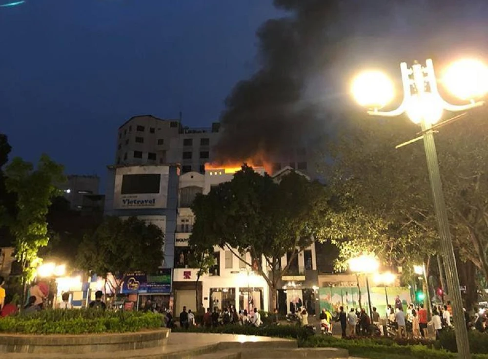 Vụ cháy xảy ra vào khoảng 18 giờ 30 tại nhà số 1 đường Hai Bà Trưng, phường Tràng Tiền, quận Hoàn Kiếm, Hà Nội.