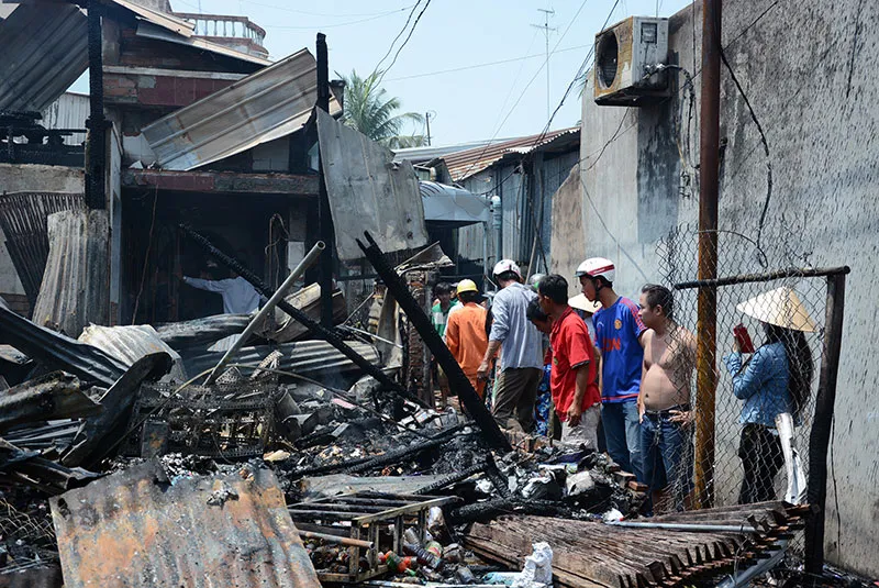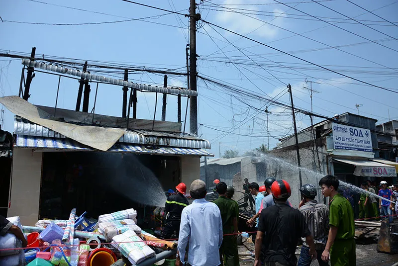Hiện trường vụ cháy hai tiệm tạp hóa.