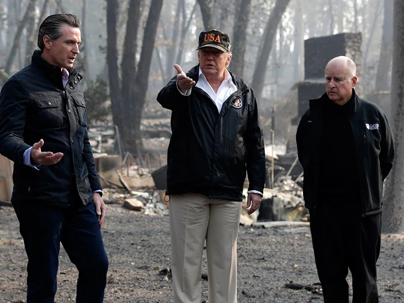 Tổng thống Mỹ Donald Trump ngày 17-11 đến thị trấn Paradise ở Bắc California - nơi gần như bị xóa sổ trong đám cháy Camp Fire và TP Malibu ở Nam California - một trong những địa phương đám cháy Woolsey càn quét. Đi cùng với ông Trump là đương kim Thống đốc California Jerry Bromwn và Thống đốc đắc cử Gavin Newsom. Dù đều là người của đảng Dân chủ và vốn chỉ trích mạnh ông Trump nhưng cả hai ông Brown và Newsom đều hoan nghênh chuyến thăm của ông Trump. Nhiều người dân California hài lòng khi thấy ông Trump đích thân đến hiện trường chứ không phải chỉ nhìn thảm họa qua truyền hình.