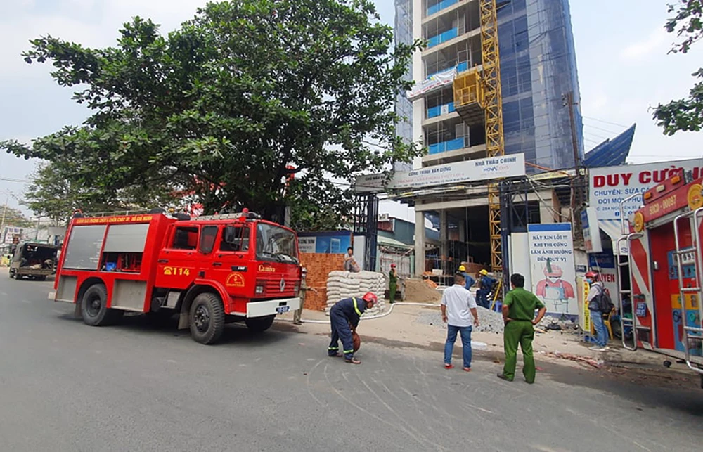 Lực lượng PCCC có mặt tại hiện trường. Ảnh: NGUYỄN YÊN
