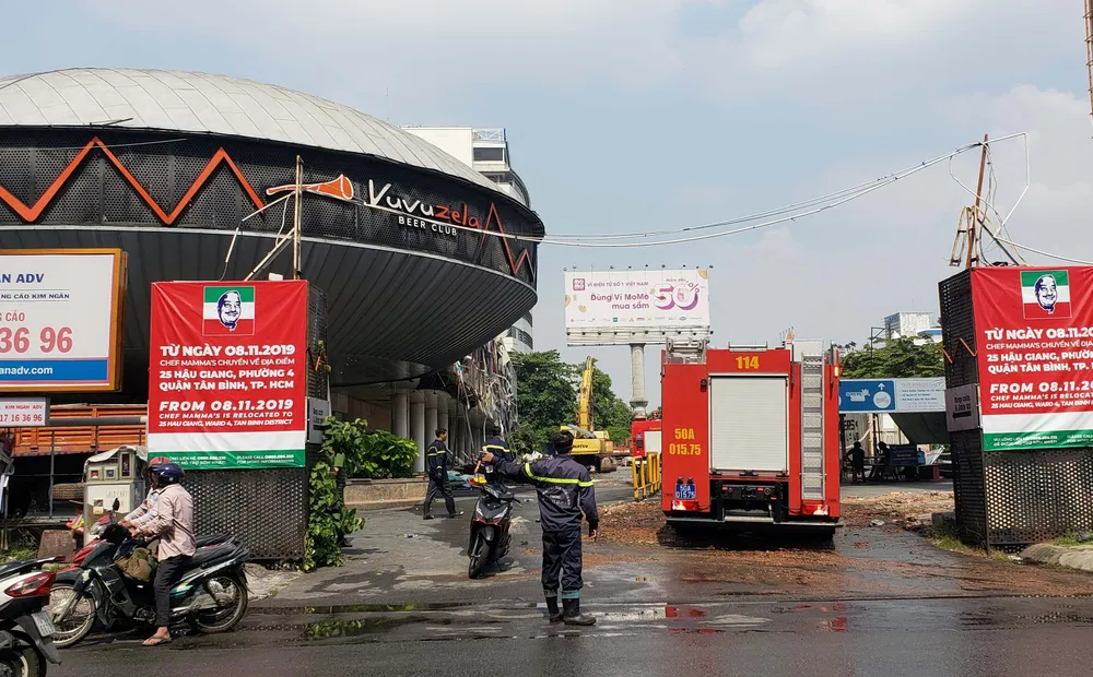 Một công trình siêu thị gần sân bay Tân Sơn Nhất (quận Tân Bình, TP.HCM) đang tháo dỡ thì bị cháy.