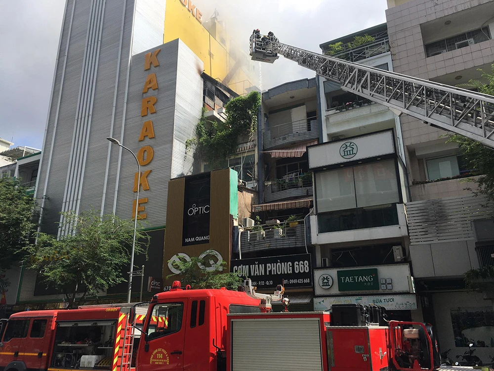 Khoảng 10 giờ cùng ngày, ngọn lửa bất ngờ bùng phát từ bên trong quán karaoke 6 tầng tại địa chỉ 672 Sư Vạn Hạnh, phường 12, quận 10.