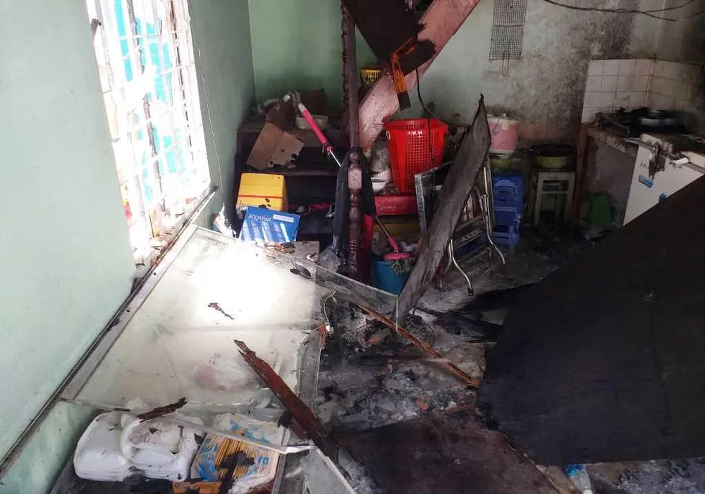 Vụ hỏa hoạn không gây thiệt hại về người song đã thiêu rụi nhiều tài sản trong nhà. Nước chữa cháy lan xuống làm hư hỏng một số vật dụng điện tử trong nhà.