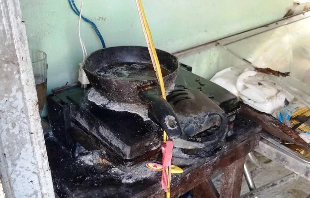Vật dụng trong quán bị cháy. Ảnh: HẢI HIẾU