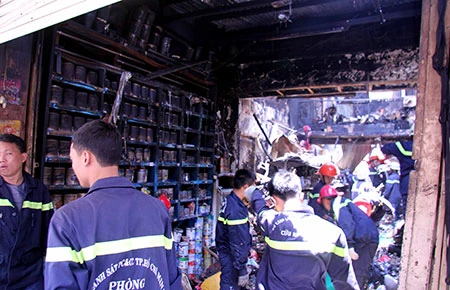 Hiện trường vụ hỏa hoạn tiệm tạp hóa Phượng Hoàng. Ảnh: XN