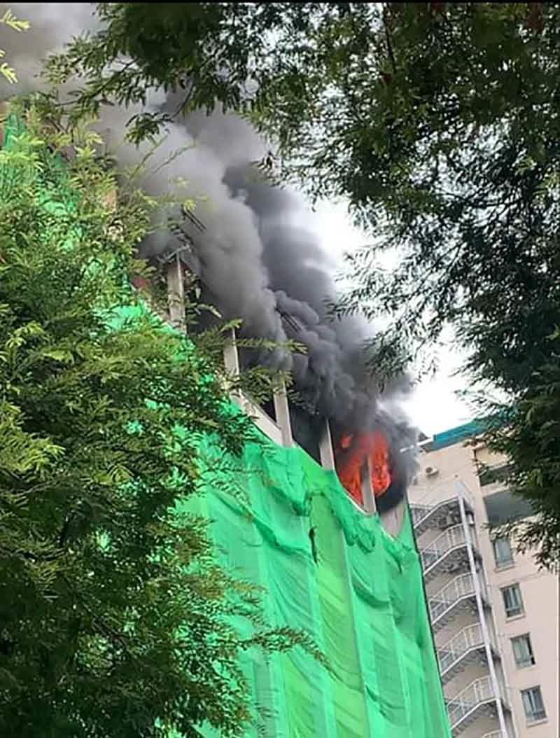 Theo thông tin, tòa nhà trên đang được tháo dỡ sửa chữa thì xảy ra cháy.