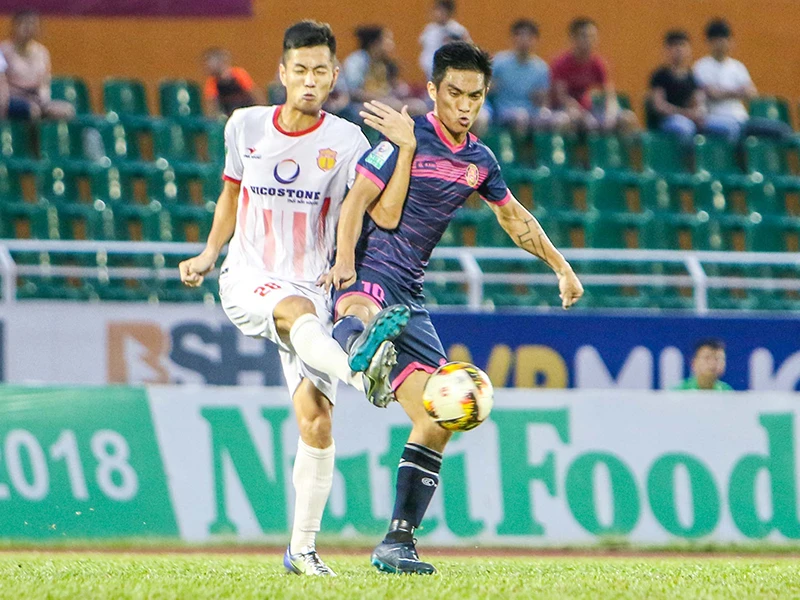 Sài Gòn (phải) sắp trụ hạng an toàn trong khi Nam Định không còn nắm quyền tự quyết. Ảnh: HUY PHẠM