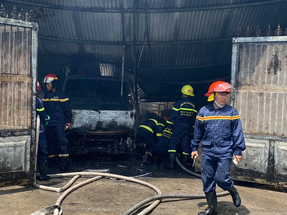 Người dân phát hiện nên hô hoán, kêu cứu và huy động phương tiện tại chỗ tìm cách tiếp cận dập lửa. Do kho xưởng khóa trái, lửa phát sinh trong khu vực hẹp nên bao trùm cả chiếc xe tải bên trong và phát ra cả tiếng nổ.