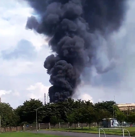 Cột khói bốc lên từ Công ty Vedan trong vụ hỏa hoạn. Ảnh: CTV