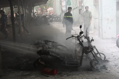 Theo ghi nhận tại hiện trường đám cháy, có khoảng 4-5 xe máy và xe đạp điện bị thiêu rụi hoàn toàn. Thời điểm xảy ra vụ hỏa hoạn là thời điểm các thí sinh hết giờ làm bài, do vậy sự việc xảy ra có rất đông thí sinh và phụ huynh hiếu kỳ tới xem.