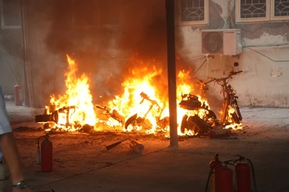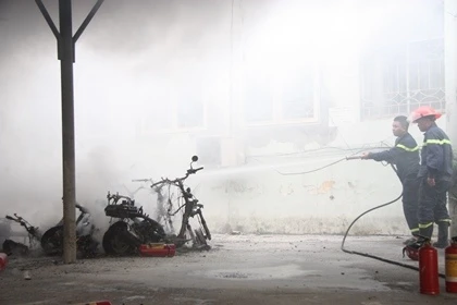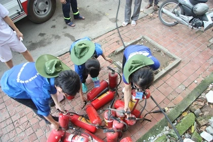 Lúc này lực lượng bảo vệ, cùng các sinh viên tiếp sức mùa thi của ĐH Sư phạm gần đó đã hô hoán nhau dùng bình chữa cháy mini để dập lửa, di chuyển một số xe máy ra khỏi lán xe đề phòng lửa cháy lan. Đồng thời thông báo cho lực lượng PCCC tới hiện trường để dập tắt đám cháy.