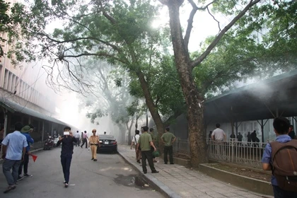Theo các nhân chứng, vào thời điểm này mọi người nghe thấy tiếng nổ lộp bộp bốc ra từ một lán xe thuộc khuôn viên của ĐH Quốc gia Hà Nội. Ngay sau đó khói và lửa đã bốc lên dữ dội.
