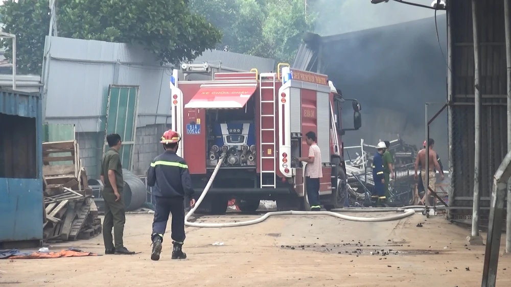 Đến trưa 14-6, vụ cháy tại một vựa phế liệu nằm trong khu dân cư sát đường ĐT 747B (phường Thái Hòa, thị xã Tân Uyên, tỉnh Bình Dương) đã cơ bản được khống chế.