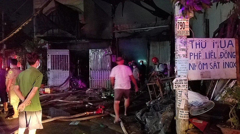 Tối hôm trước, người dân phát hiện khói, lửa phát ra từ vựa phế liệu nằm liền kề căn nhà số 64 đường số 8 (phường Bình Hưng Hòa, quận Bình Tân) nên hô hoán.