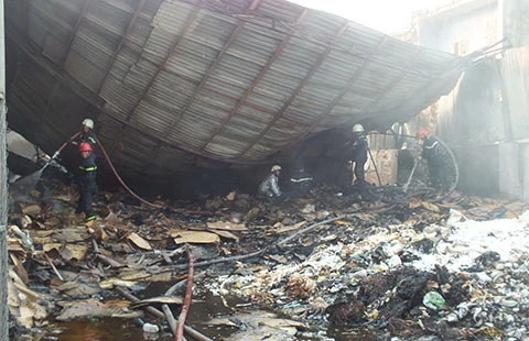 Lực lượng tại chỗ mang nước, bình CO2 tham gia ứng cứu nhưng bên trong chứa nhiều nguyên phụ liệu dễ bén lửa khiến đám cháy lan rộng nên đành bất lực.