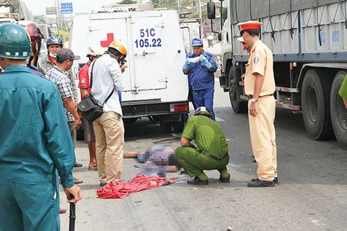 Tại hiện trường, thi thể nam thanh niên nằm sấp, cách chiếc xe máy khoảng 7 m, mũ bảo hiểm bị vỡ… Vụ tai nạn đã khiến làn xe ô tô ùn ứ cục bộ trên cầu vượt Tân Thới Hiệp.