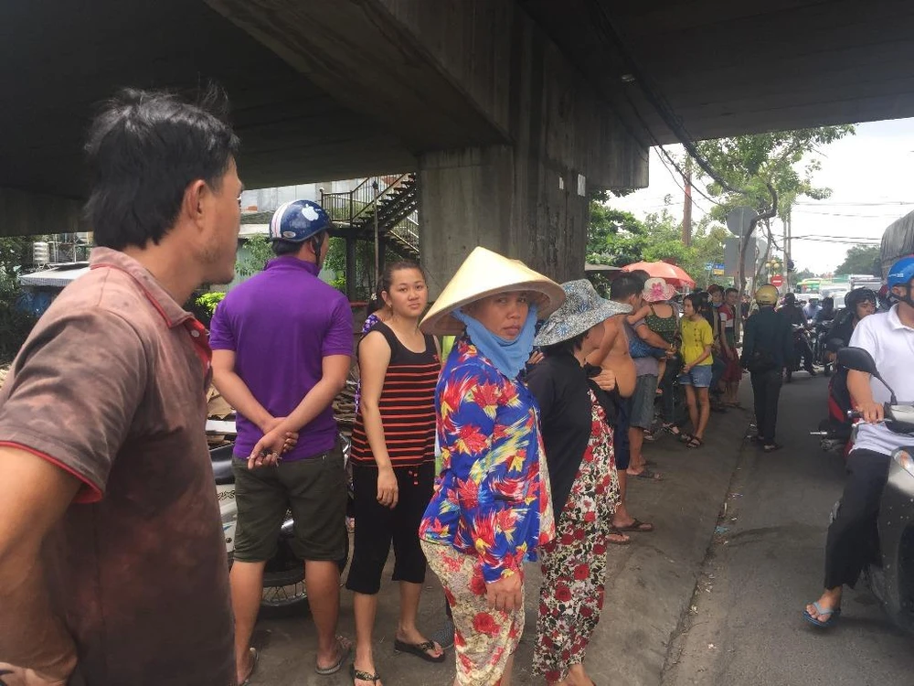 Phát hiện sự việc, nhiều người đi đường đã hô hoán dừng container lại.