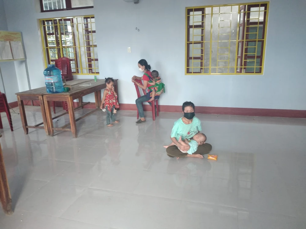Vợ và con của anh Định đang được cưu mang, giúp đỡ ở trong Nhà văn hóa thôn Phú Xuân (xã Phong Thu, huyện Phong Điền, Thừa Thiên-Huế). Ảnh: H.THÀNH.
