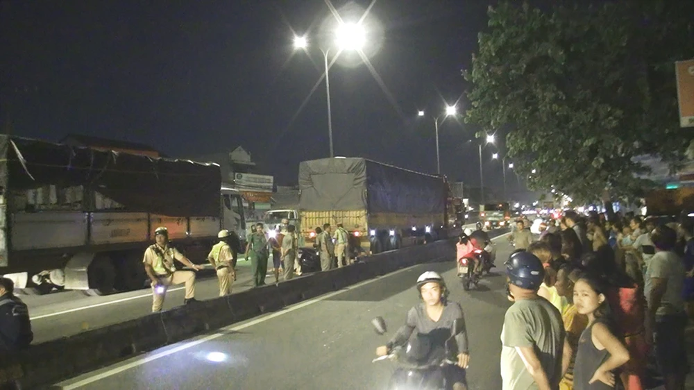 Theo người dân, trước khi xảy ra tai nạn không lâu, xe đầu kéo lưu thông đến địa điểm nói trên thì gặp sự cố máy móc. Tài xế cho xe tấp vào sát mép dải phân cách với làn xe máy để khắc phục. Khi chuẩn bị đặt vật cản cảnh báo thì xảy ra vụ việc.