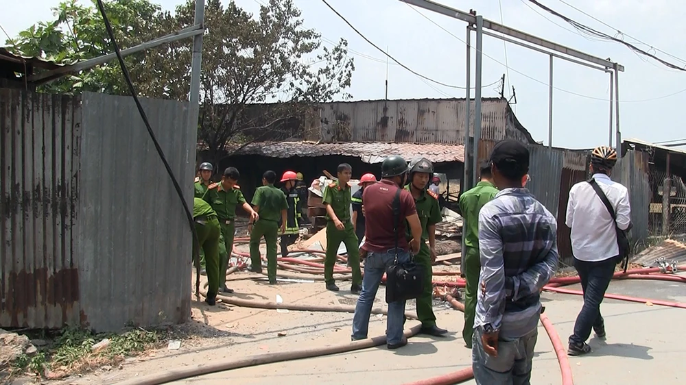 Cảnh sát PCCC quận 12 sau khi nhận thông tin đã điều tám xe chữa cháy và huy động 50 cán bộ, chiến sĩ đến phong tỏa hiện trường và triển khai dập lửa, chống cháy lan. Các cán bộ, chiến sĩ mặc áo chống cháy, mặt nạ phòng độc tiếp cận nhiều hướng và khống chế hỏa hoạn trong ít phút.