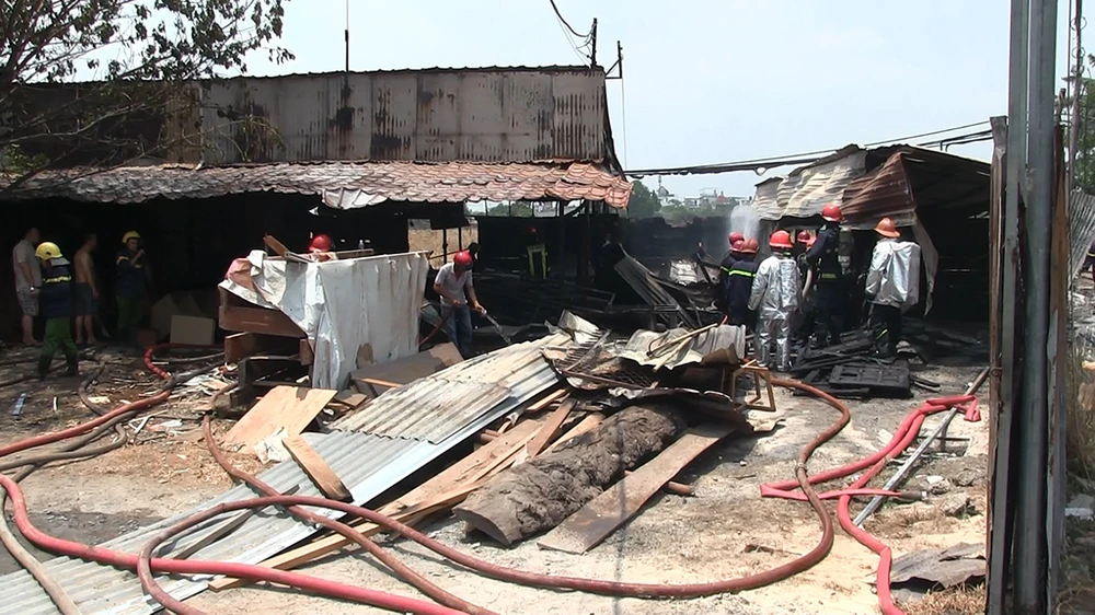 Hỏa hoạn bùng phát từ một xưởng gỗ trên địa bàn quận 12 khiến cư dân một phen hốt hoảng. Ảnh: H.Tâm