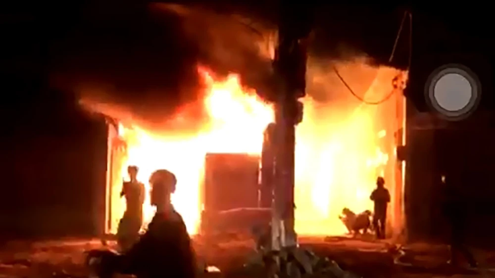 Hỏa hoạn bùng phát dữ dội từ xưởng gỗ ở Tô Ký, Hóc Môn tối 5-1. Ảnh: HT