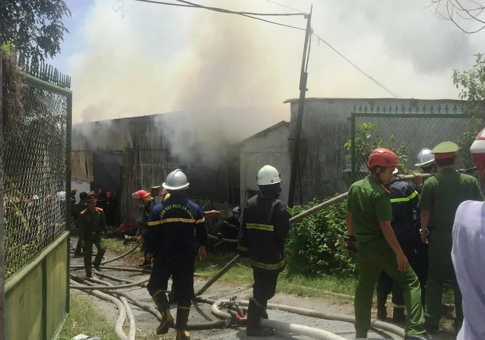Thời điểm này nhà xưởng không có công nhân làm việc và đang đóng cửa. Lực lượng chữa cháy tại chỗ không thể dập lửa, đám cháy bùng phát mạnh, cột khói bốc cao hàng chục mét.