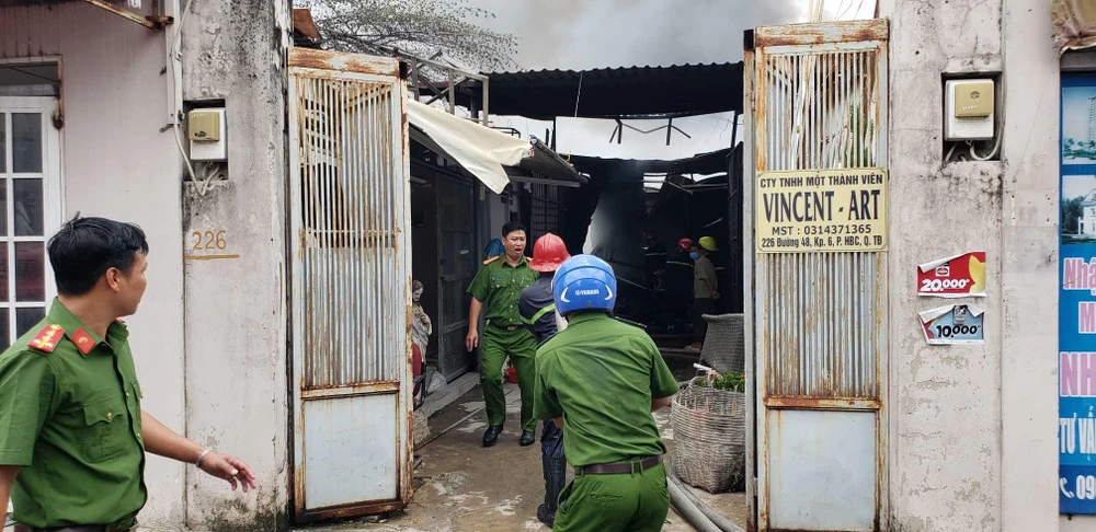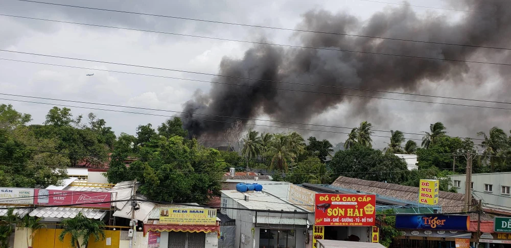 Ngọn lửa đã bùng phát tại một nhà xưởng nằm trên đường 48, phường Hiệp Bình Chánh, quận Thủ Đức (TP.HCM) làm ảnh hưởng nhiều nhà dân và nhà xưởng khác vào khoảng 10 giờ 30 hôm nay, 5-9.