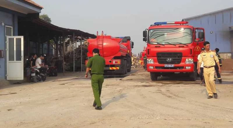 Người dân xã Diễn Hồng phát hiện khói bốc lên nghi ngút ở một nhà xưởng chế biến than sạch xuất khẩu nằm trong Khu công nghiệp Tháp - Hồng - Kỷ nên kêu cứu và báo cơ quan chức năng.